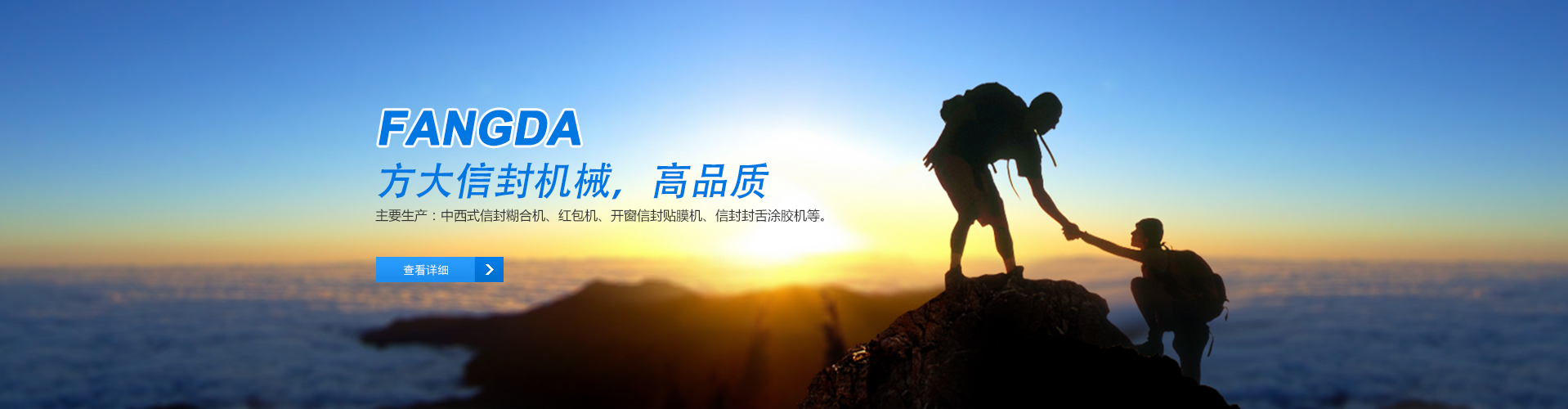瑞安方大信封機械有限公司,是專業生產信封機糊合設備系列產品的企業,主要產品有:中西式信封糊合機、紅包機、開窗信封貼膜機、信封封舌涂膠機等。實力來自規(guī)模,品質源自專業。我廠擁有專業老練的工程設計人員,經驗豐富的生產安裝人員,嚴謹認真的質量檢驗人員,從而保證了所生產機械的優(yōu)良品質。此外,我廠也將從技術上、性能上不斷改進提高,以更好的滿足客戶的需求。“客戶至上,服務為本”是我廠長期一貫的服務理念,從安裝、測試、保養、維修等售后服務,我們會給予客戶充足的信息資訊與技術支持,因此在業界獲得良好的口碑及信譽,您的滿意是我們的榮耀!歡迎您來電查詢、來人參觀,我們一定能給你滿意的答復!秉承“顧客至上,銳意進取”的經營理念,堅持“客戶為先”的原則為廣大客戶提供溫馨的服務。歡迎惠顧!